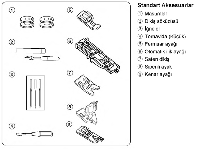 *Standart ve opsiyonel aksesuar ile kenar dikişi, fermuar, gizli fermuar, nervür dikişleri, kenar kıvırma, overlok, ilik açma, düğme, aplike, kapitone dikimi ve daha birçok özellik.*Her türlü kumaşı dikebilme imkanı(kot, penye, triko vb.)